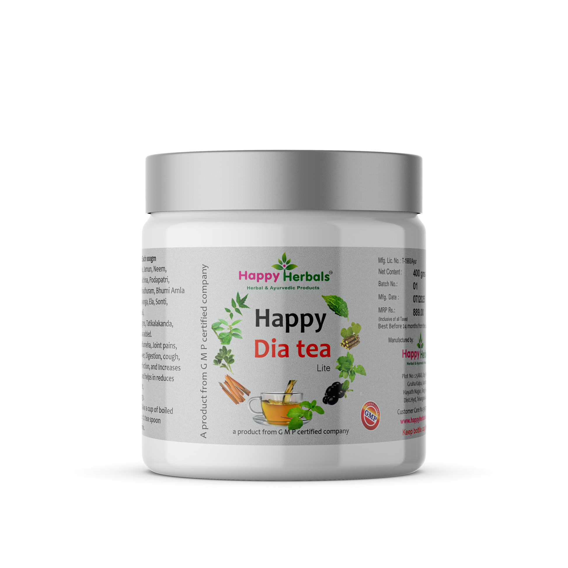 Happy Dia Tea is a 100% natural herbal tea blend formulated by Happy Herbals to support individuals with diabetes and prediabetes. This classical Ayurvedic combination brings together powerful herbs like Podapatri, Tulasi, Triphala, Haridra, and Shuddha Kuchala, which are traditionally known to help balance blood sugar, metabolism, and digestion.