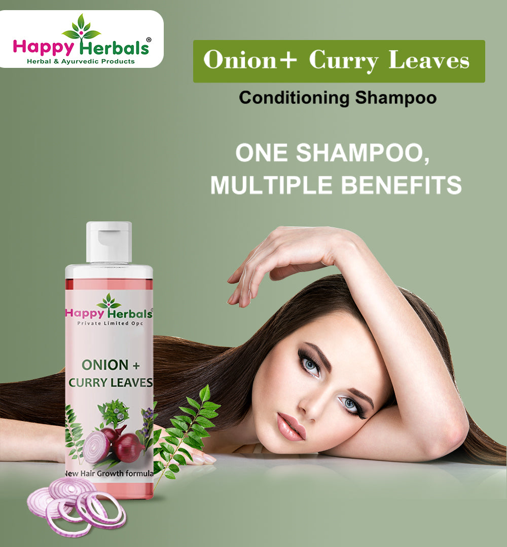 Experience the power of nature with HappyHerbals' Onion Curry Leaves Shampoo and transform your hair. Embrace the natural solutions from India's best Ayurvedic company and unlock the potential of healthy and vibrant hair. Order now and experience the remarkable benefits of this herbal shampoo!