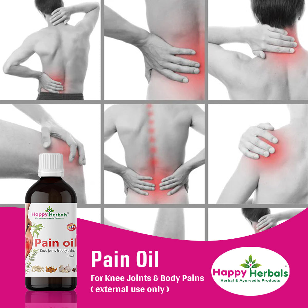 Introducing HappyHerbals' Pain Oil – the ultimate solution for knee joints and body pains. Crafted with expertise by HappyHerbals, the best Ayurvedic company in India, this pain oil is a powerful blend of various herbs that work synergistically to provide effective relief from discomfort and promote overall well-being.