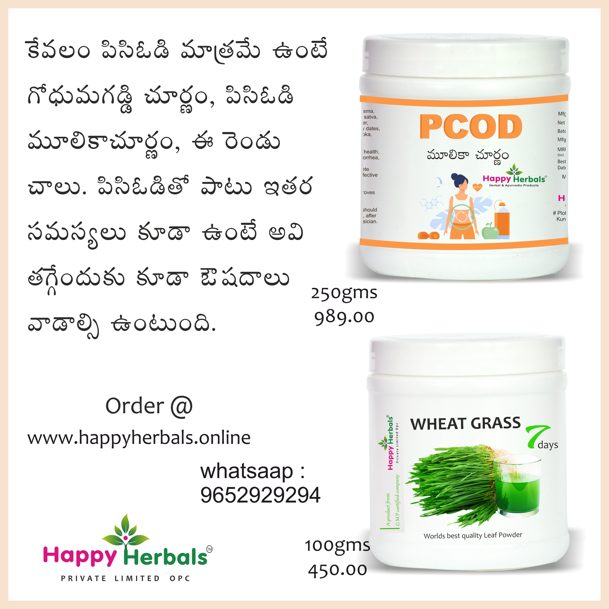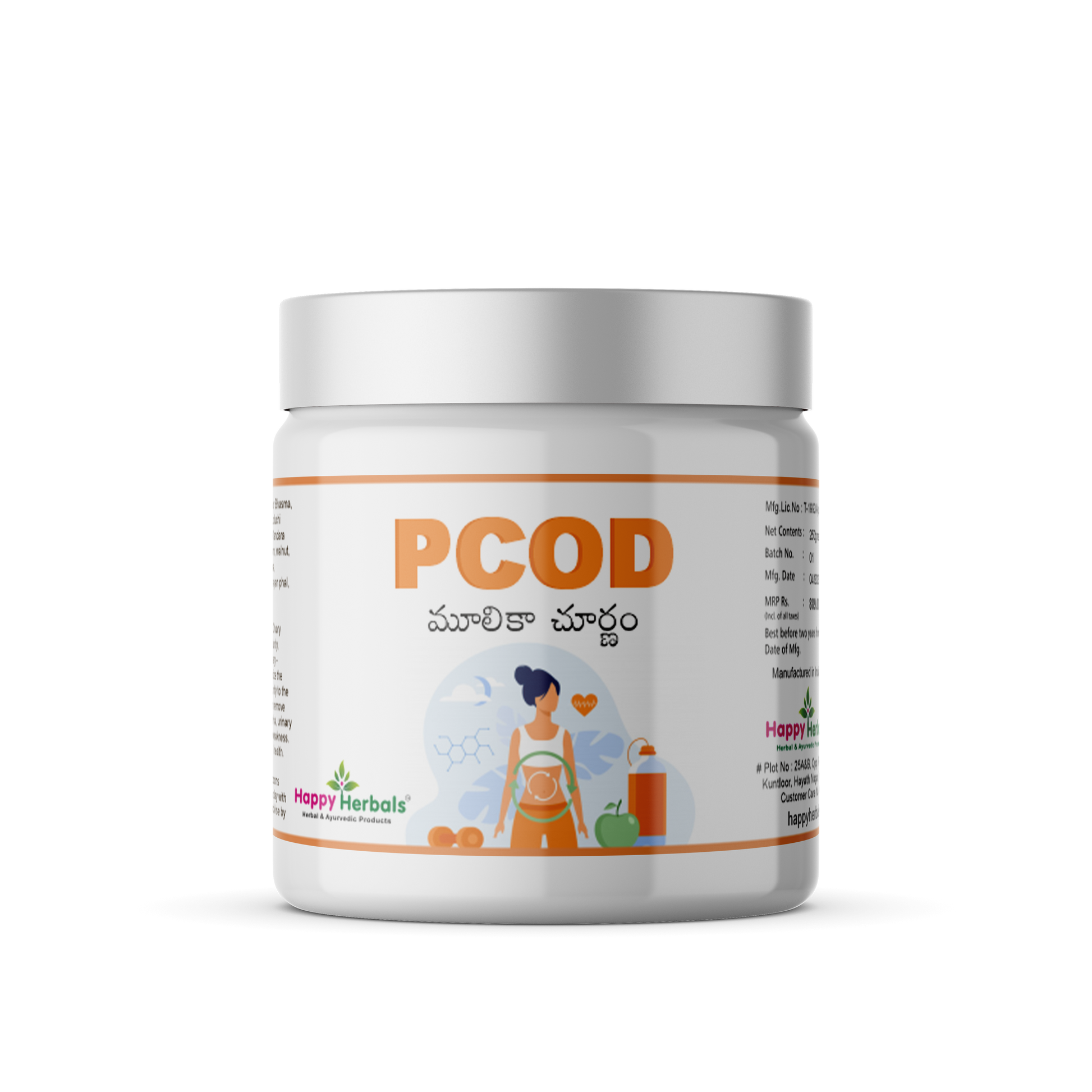 Happy Herbals ensures 100% natural, chemical-free, and authentic Ayurvedic formulations, made with strict quality standards. PCOD Moolika Churnam is the result of deep Ayurvedic knowledge, prepared to help women regain hormonal balance and restore reproductive health — gently and naturally.